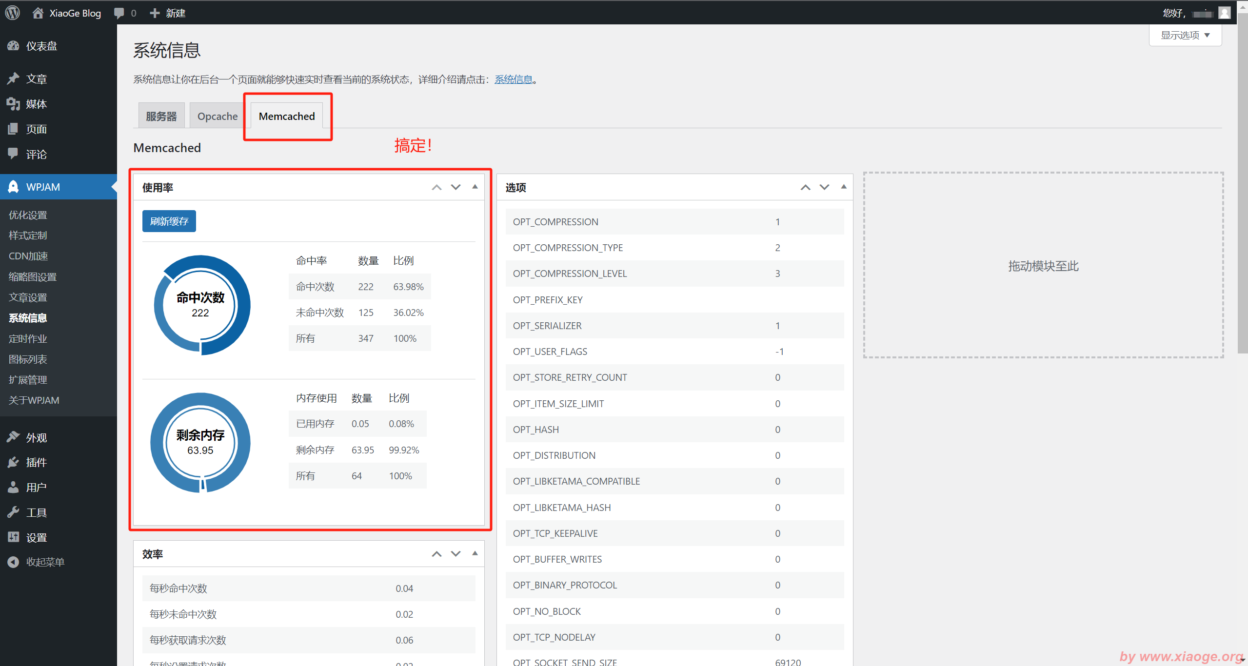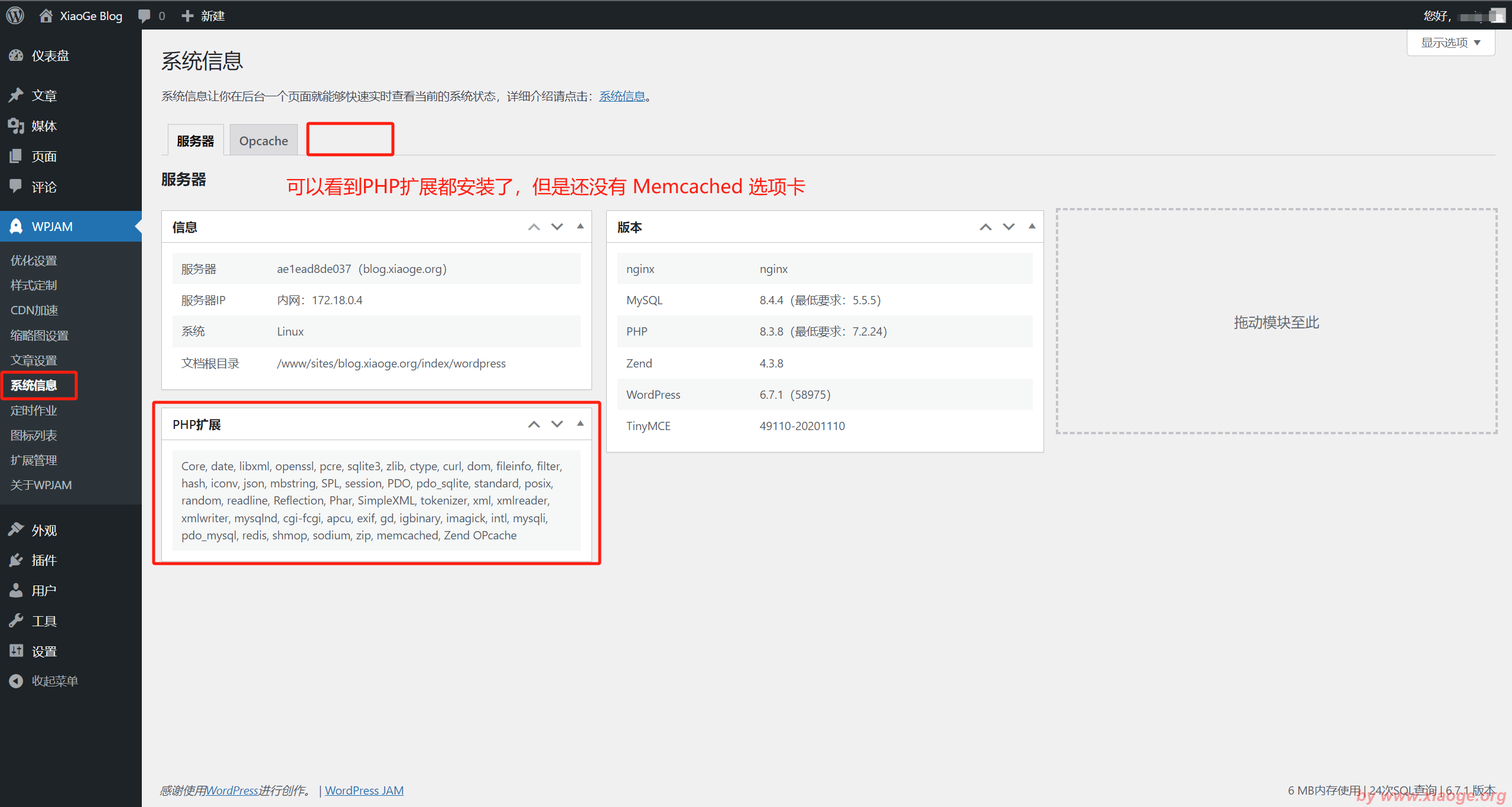 已经能在【WPJAM】-【系统信息】看到 【PHP拓展】 了,但还没有 【Memcached】 选项卡;