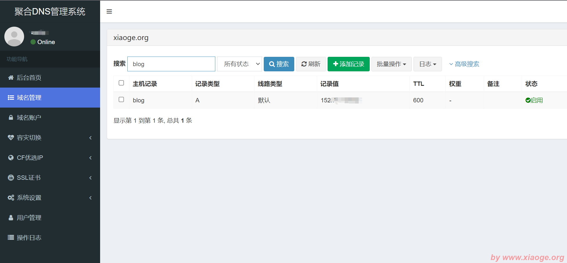 解析:域名A解析到这台服务器的ip(这个就不用多说了吧)