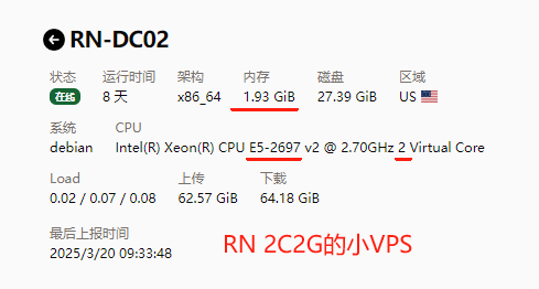 机器配置:RN 2C2G的小机器(常规E5 CPU)