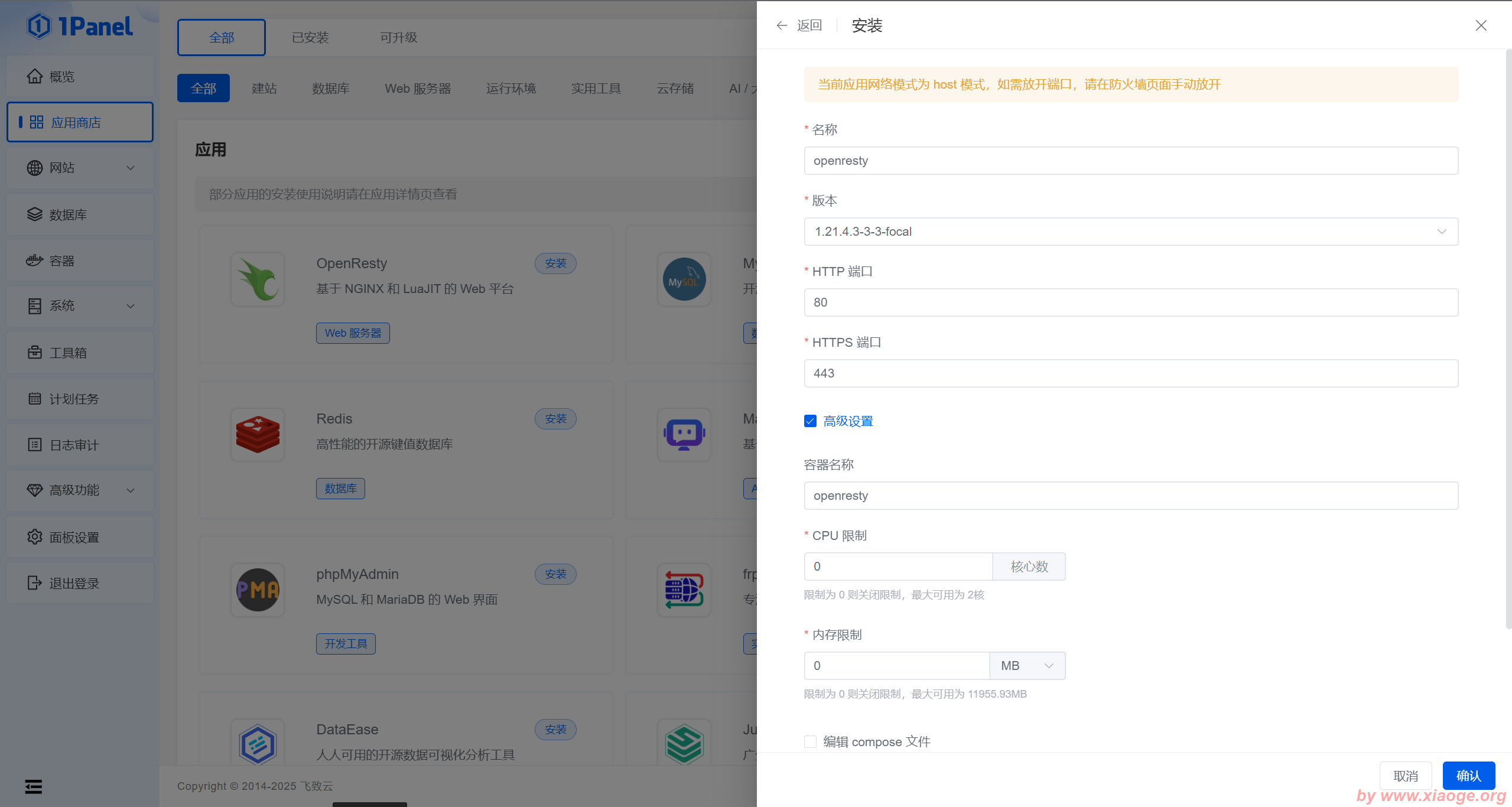 1Panel 面板的安装就略过 了(同类教程非常多),这里就不重复造轮子了!