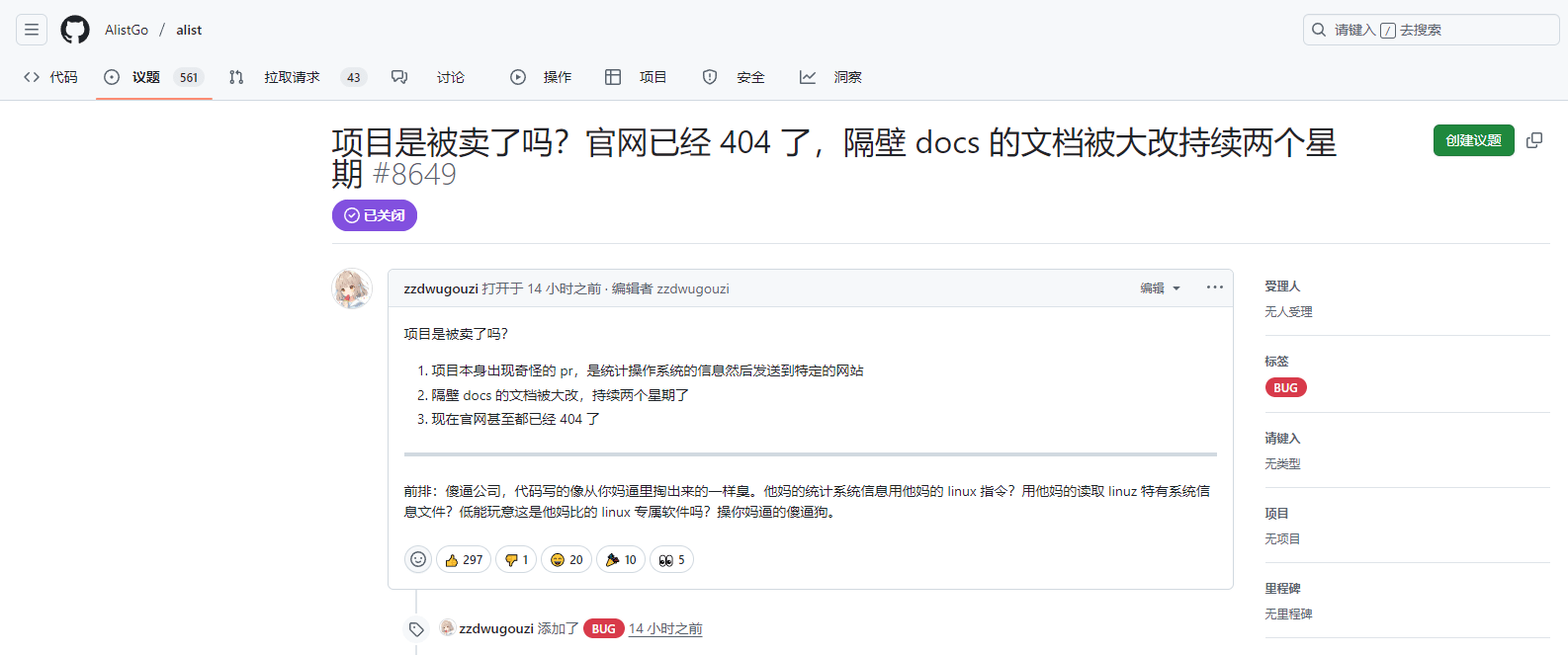 事件始于用户发现 GitHub 仓库中出现可疑代码提交,涉及收集系统信息并上传至第三方服务器,随后项目文档与官网也悄然更换,加入付费推广与QQ群。大量迹象显示,项目已被不明公司接管。