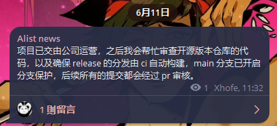 6月11日,AList 原作者 Xhofe 发公告确认项目“确实已经出售”,并表示会尽量协助代码审查、确保构建流程安全。但他自己将逐步退出维护工作。