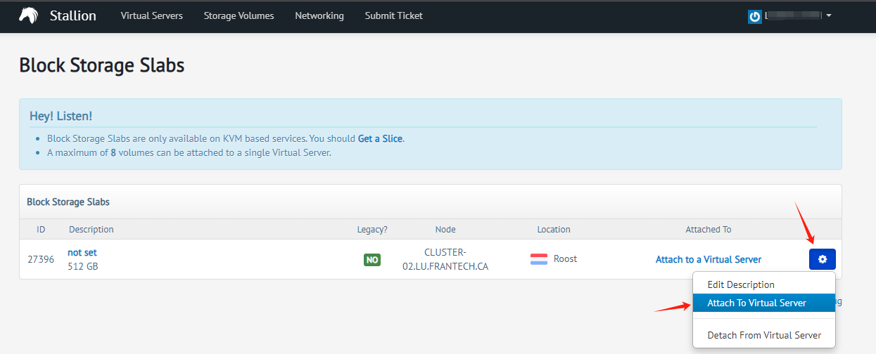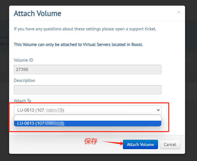 绑定到服务器(只能相同区域),同时记录下你的存储块ID ,比如我这个是 27396