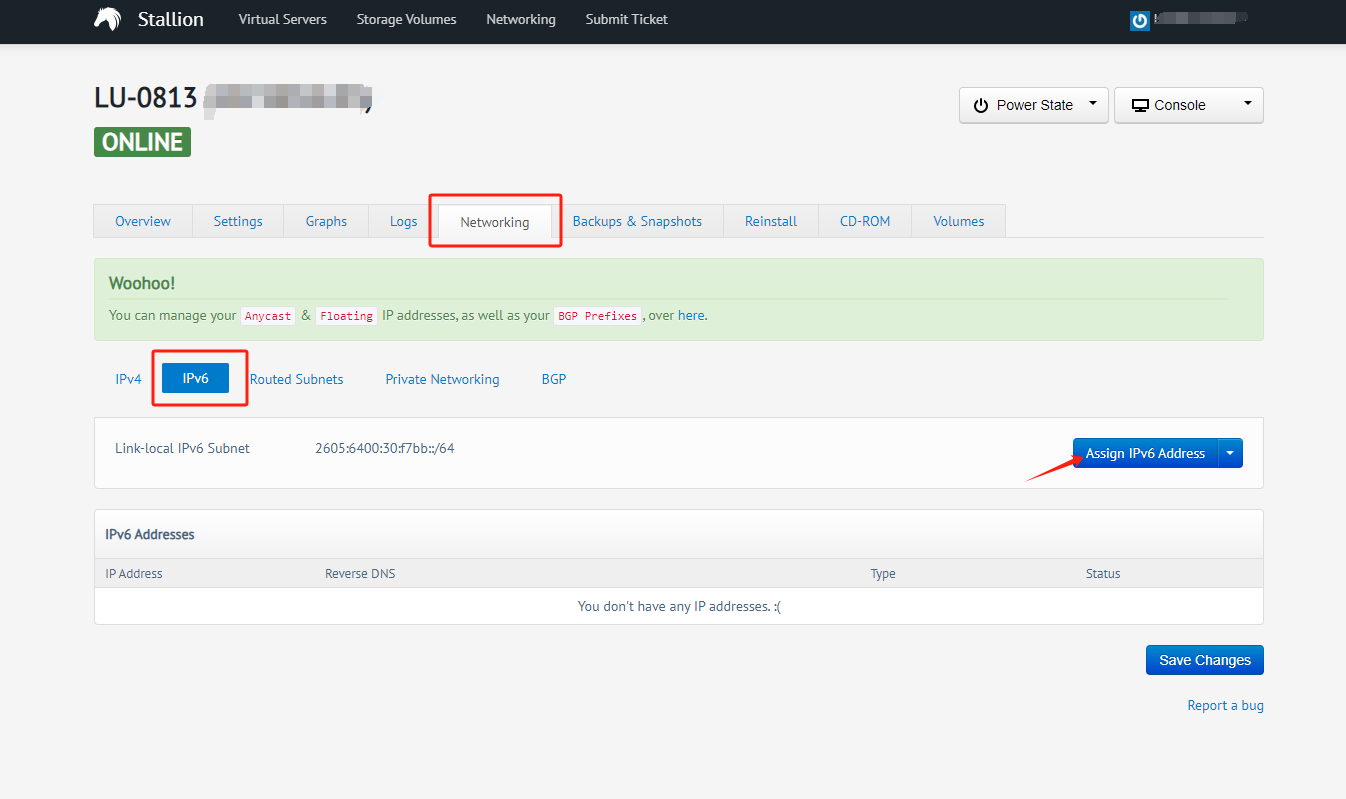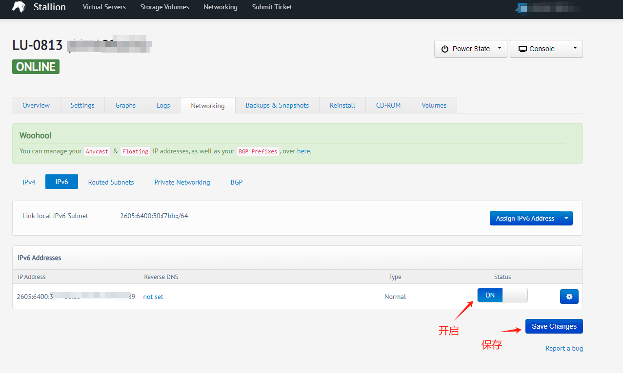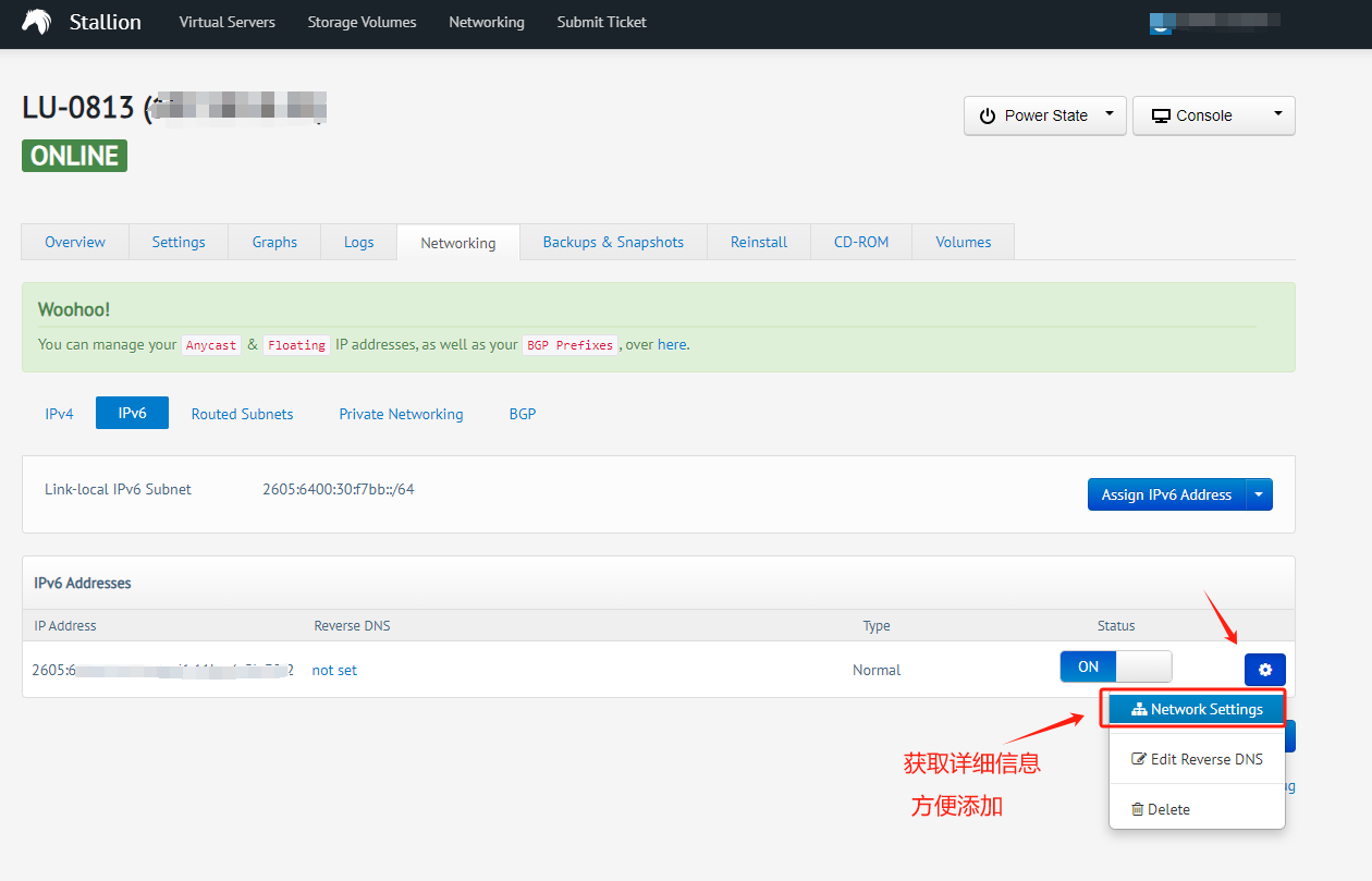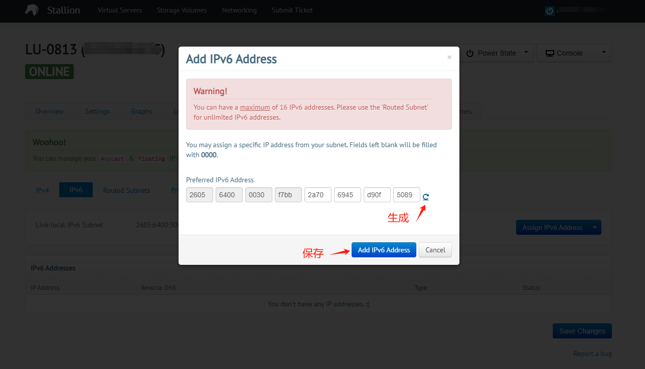 进入Networking > IPV6,点击添加ipv6