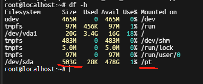 echo "/dev/disk/by-id/scsi-0BUYVM_SLAB_VOLUME-123456 /pt ext4 defaults 0 0" >> /etc/fstab查看挂载情况(可以重启后再执行一次,查看是否开机自动挂载)