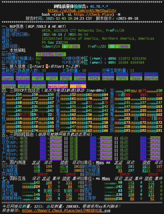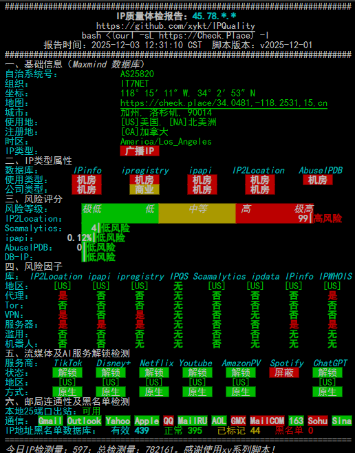 3 0.51ms 45.78.*.* AS25820 美国 加利福尼亚州 洛杉矶 it7.net