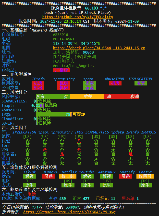 IPV4 位置 : Los Angeles / California / US