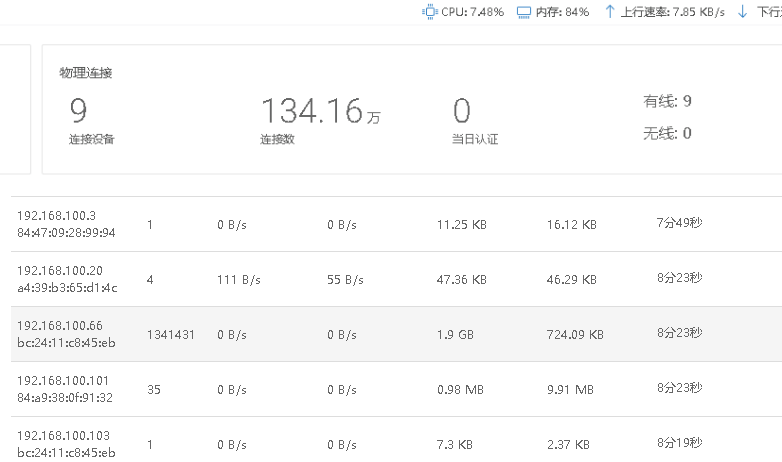 异常的连接数: