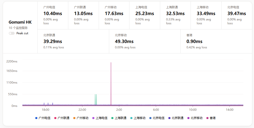 近期少有的香港 VPS 一条直线,表现亮眼~