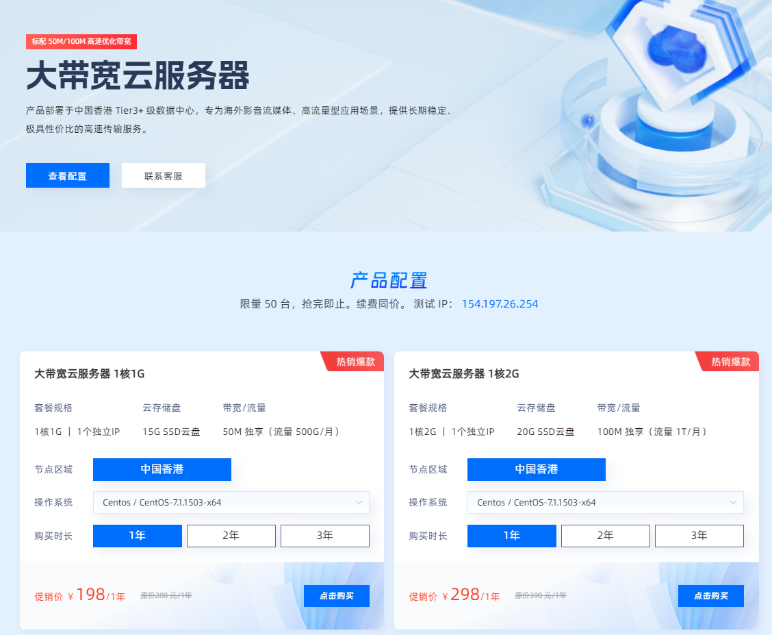 他家VPS的促销倒是很少见,还是50/100m独享带宽的香港三网4837回程机器,续费同价!